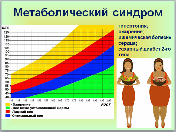 Оценивается телосложение: измеряются масса тела с расчетом ИМТ (вес тела (кг)/рост (м) 2 ) и окружность талии в положении стоя (ОТ) (увеличением считается размер у мужчин> 102 см, у женщин > 88 см).