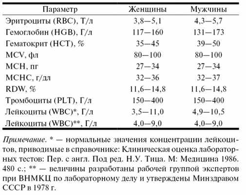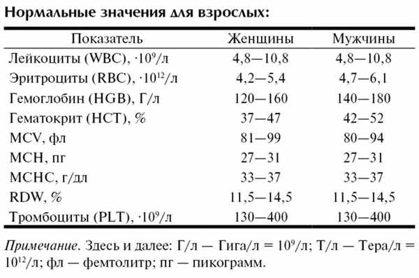 Нормальные значения гемограммы взрослых, получаемые на гематологических анализаторах