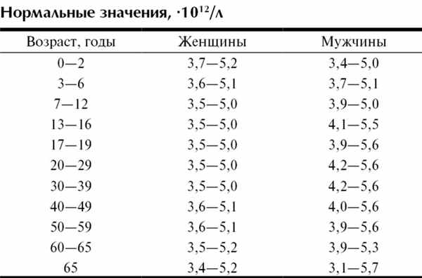 Эритроциты – самая многочисленная популяция клеток крови, обладающих разнообразными функциями, в частности дыхательной, трофической, детоксицирующей. Количество эритроцитов довольно вариабельно в условиях нормы: так, у женщин оно колеблется от 3,7⋅1012/л до 4,7⋅1012 /л, а у мужчин – от 4,5⋅1012/л до 5,5⋅1012 /л. Сдвиг этих показателей до нижней или верхней границы нормы может быть одним из признаков болезни.