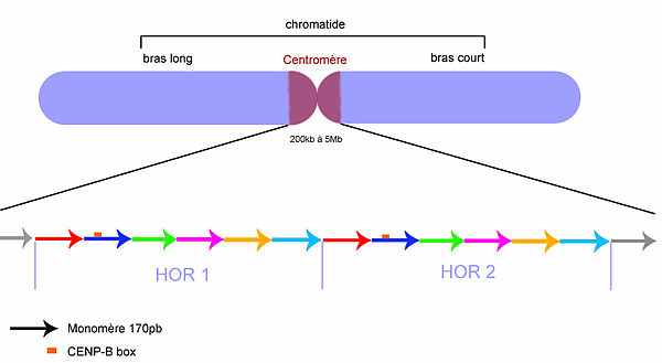 Хроматина в центромерах имеет особые характеристики , которые отличают обе эухроматином и гетерохроматина , поэтому мы можем квалифицировать как центромерная (иногда centrochromatine или, особенно на английском языке, хроматин ЕКС ).
