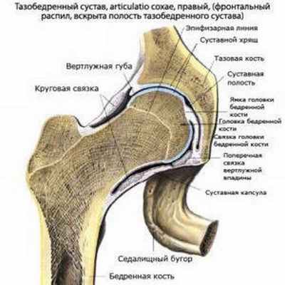 Сложное строение тазобедренного сустава человека создается хрящевыми, костными, и мышечными тканями. Тазобедренный сустав образован соединением головки бедренной кости с вертлужной впадиной тазовой кости. Вертлужная впадина соединяет подвздошную, лобковую и седалищную кости.