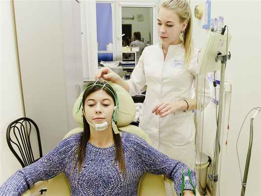 Во время исследования пациент находится в удобном кресле, в расслабленном состоянии, с закрытыми глазами, а его голова - на специальном подголовнике.