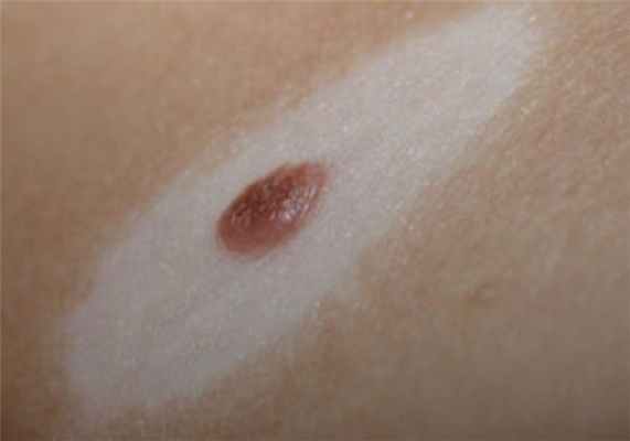 Дифференциальный диагноз. Необходимо знать, что гипопигментированный ободок также может наблюдаться вокруг других доброкачественных или злокачественных образований: вокруг голубого или врожденного меланоцитарного невусов, невуса Шпиц, нейрофибром, себорейного кератоза, дерматофибром, базальноклеточного рака, меланом (первичных и вокруг ее метастазов), бородавок и контагиозного моллюска.