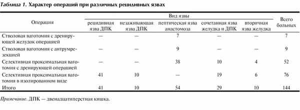 По сводным данным А.И. Горбашко и Р.К. Рахманова [4], рецидив язвы после ваготомии встречается у 10-15% оперированных и с течением времени имеется тенденция к увеличению этого показателя.