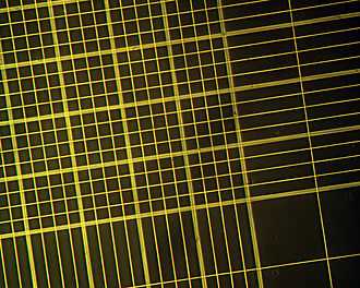 Область сетки улучшенного гемоцитометра с линейкой Нейбауэра состоит из девяти квадратов 1 x 1 мм (1 мм 2 ). Они подразделяются на три направления; 0,25 x 0,25 мм (0,0625 мм 2 ), 0,25 x 0,20 мм (0,05 мм 2 ) и 0,20 x 0,20 мм (0,04 мм 2 ). Центральный квадрат далее подразделяется на квадраты 0,05 x 0,05 мм (0,0025 мм 2 ). Поднятые края гемоцитометра удерживают покровное стекло на 0,1 мм от размеченной сетки, придавая каждому квадрату определенный объем (см. Рисунок справа).