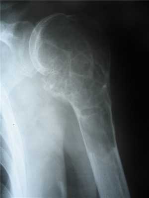 Стенки костной кисты состоят из веретенообразных клеток и фибробластов. На рентгенограмме кисты определяются в виде очагов просветления.