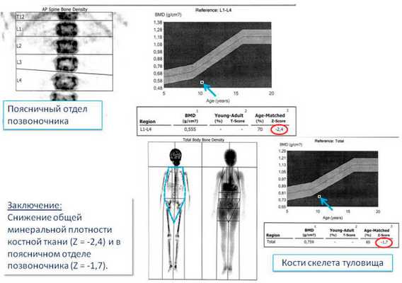 Денситометрия (снижение минеральной плотности костной ткани).