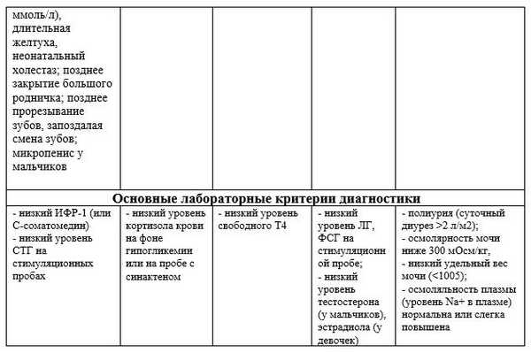 Для детей с врожденным множественным дефицитом гормонов гипофиза характерно замедление динамики роста с первых лет жизни. У детей с дефицитом СТГ скорость роста не превышает 4 см в год, чаще всего она составляет 1–2 см в год.