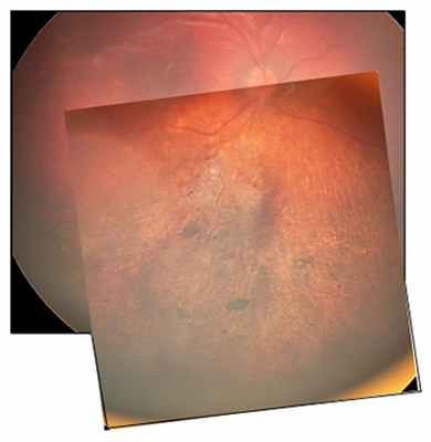 Офтальмоскопически эта аномалия РПЭ представляет собой плоский беспигментный очаг овальной формы с четкими границами, расположенный в темпоральной части макулярной зоны (в редких случаях медиальный край может располагаться субфовеолярно). Край очага, обращенный к центральной ямке сетчатки (fovea centralis), может быть заостренным и гиперпигментированным [2—5].