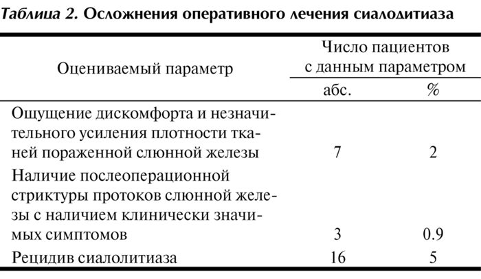 Таблица 2. Осложнения оперативного лечения сиалодитиаза