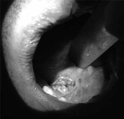 Рис. 7. Камень в протоке поднижнечелюстной слюнной железы.