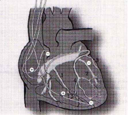 При открытых операциях реваскуляризации миокарда, ремоделирования ЛЖ или пластики митрального клапана электроды фиксируются эпикардиально - в правом предсердии и у основания сердца к обоим желудочкам.