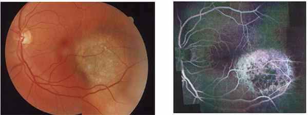 3. Флюоресцентная ангиография – метод позволяет исследовать сосуды глазного дна и выявить характерные признаки для опухолей. При этом проводится введение специального вещества (например, флюоресцеин) в вену пациента. Метод противопоказан при аллергических реакциях в анамнезе (на йод и другие медикаменты).