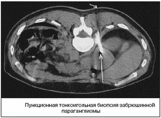 Пункционная биопсия позволяет уточнить характер процесса и определить морфологическое строение новообразования. Чаще пункционная биопсия является завершающим этапом обследования больного после уточнения локализации, размеров и взаимоотношения опухоли с соседними органами.