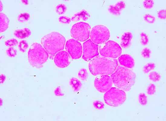 Диагностика: поскольку специфичных симптомов при острых лейкозах не существует, диагноз устанавливают только после морфологического исследования крови и костного мозга. Появление даже единичных бластных клеток в периферической крови (гемограмма) требует безотлагательного исследования костного мозга (стернальная пункция).