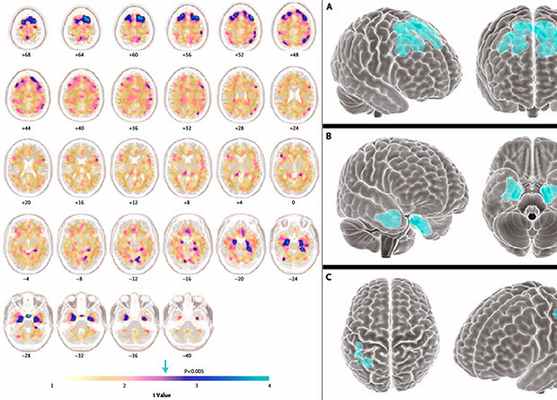 С помощью ПЭТ ученым удалось выявить у экспериментальной (но не у контрольной) группы скопления тау-белка в тех же областях мозга, что и в мозгах с ХТЭ, диагностированной посмертно — в лобной и височной долях и левой теменной доле. При этом количество тау-белка оказалось связано с продолжительностью карьеры спортсмена, подчеркивают ученые, но не с серьезностью нейрокогнитивных симптомов, на которые жаловались участники исследования.
