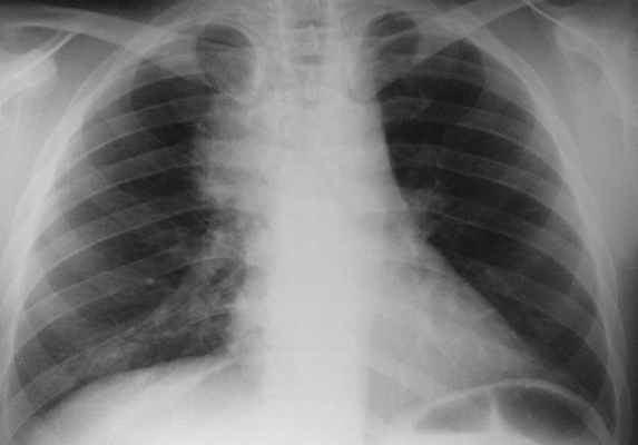 - обзорная рентгеноскопия и –графия органов грудной клетки (обязательно в двух проекциях- передне-задней и боковой) – с ее помощью фиксируют эмфизему средостения (раздутие воздухом, попавшим сюда через дефекты тканей), а на более поздних этапах – признаки гноя;