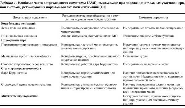 Одним из наиболее распространенных синдромов нарушенного мочеиспускания, наблюдающегося у неврологических и психиатрических больных, является гиперактивный мочевой пузырь (ГАМП). В составе ГАМП выделяют следующие симптомы: