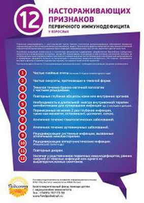12 настораживающих клинических признаков, указывающих на возможное наличие первичного иммунодефицита у взрослых – при наличии 2-х и более признаков рекомендуется консультация врача аллерголога-иммунолога: