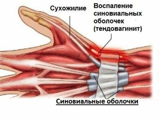 Сухожильные влагалища лучезапястного сустава — типичные места появления тендовагинита.