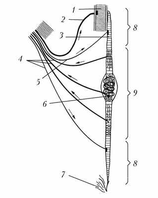 - чувствительные волокна (нейроны);