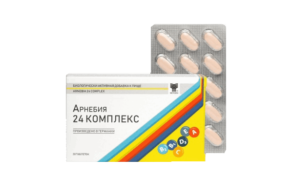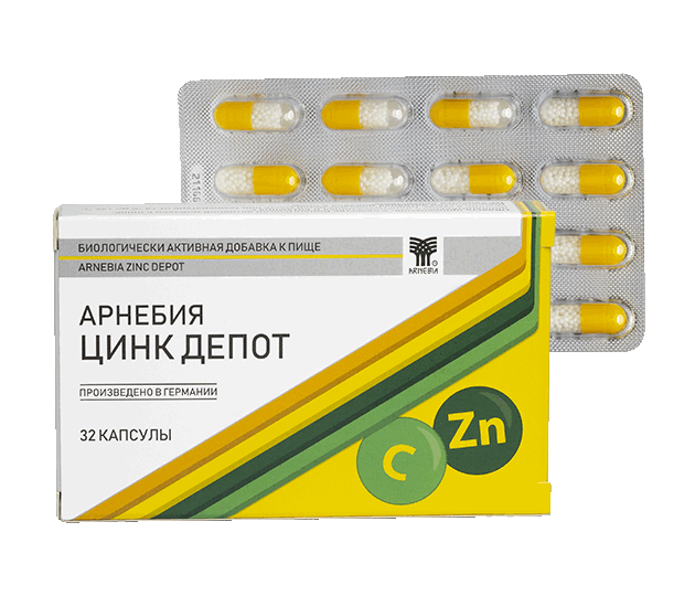 Еще одна универсальная немецкая формула – Арнебия 24 Комплекс. Она содержит 24 минерала, витамина и микроэлемента (включая цинк), которые со всех сторон поддерживают работу организма и его отдельные функции.