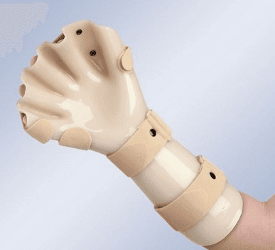 - Фиксирующая шина на кисть. Аналог гипсовой повязки, применяемый при множественных травмах руки. Позволяет обеспечить полную иммобилизацию кисти, исключающую мышечную спастичность.