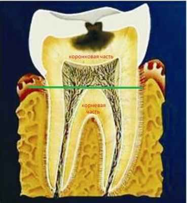 - Кариес корня зуба. Нечастое поражение, но наиболее трудно диагностируемое, поскольку дефект скрыт под десной.