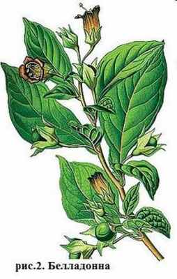 Белладонна лекарственная (сонная дурь, красавка) -- Atropa belladonna L.(рис.2). Относится к семейству пасленовых. Многолетнее травянистое растение высотой 1,5--2 м. Корневище головчатое, с крупным, вертикально входящим в почву корнем. Стебель прямостоячий, ветвистый. Листья очередные, яйцевидные. Цветки крупные, буро-фиолетовые. Плод -- черная, блестящая, крупная ягода. Цветет с июня до сентября, плодоносит с июля. Растет на горных склонах, в буковых лесах, иногда одиночно, группами или небольшими зарослями между кустарниками, по опушкам и вдоль лесных дорог, на плодородных лесных почвах. В диком виде встречается в Крыму, Краснодарском крае, на Кавказе. Во всех частях растения содержатся алкалоиды атропин, гиосциамин и скополамин, а также слизь, сахар, соли, разные кислоты, крахмал, белковые и другие вещества.