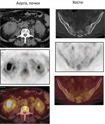 Рис. 4. ПЭТ/КТ брюшной полости (почки, аорта, кости таза).