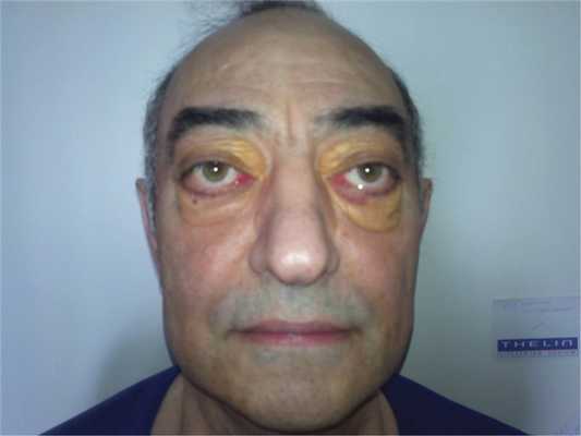 Рис. 1. Экзофтальм, ксантелазмы век.