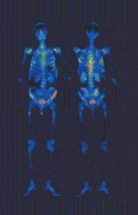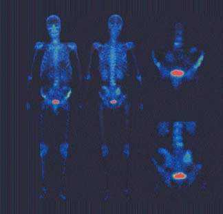 | Ранняя диагностика локализации и характера метастазов в костях при раке предстательной железы (РПЖ) с помощью лучевых методов — актуальная проблема современной онкоурологии [4, 6, 8]. Гематогенные метастатические очаги в костях при раке предстательной железы (РПЖ) встречаются в 50-70% случаев, а по данным сцинтиграфии (ОСГ) — в 12-62% (при отсутствии рентгенологических признаков) [3] |