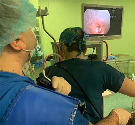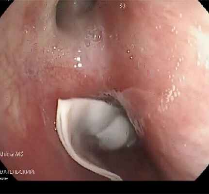 Ригидная бронхоскопия с клапанной бронхоблокацией правого верхнедолевого бронха