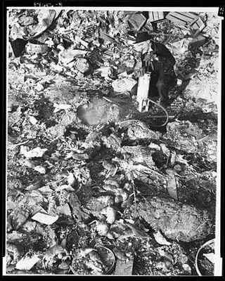 Борьба с мышиным сыпным тифом и чумой , вероятно, во время Второй мировой войны . Мужчина использует опрыскиватель на свалке, где уже много дохлых крыс. Вероятно, он распыляет ядовитый газ ( хлорпикрин ?) В «норы» грызунов.