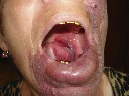 Больная К., 47 лет, обратилась в ГБУ РД РКВД г. Махачкалы с жалобами на крупные пятна лица, шеи и слизистой рта.