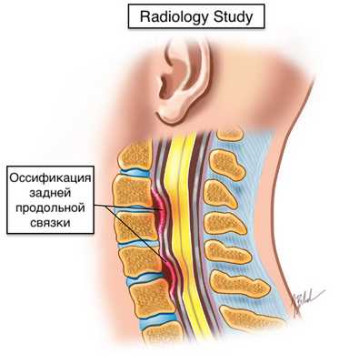 Оссификация ЗПС приводит к уменьшению передне-заднего диаметра спинномозгового канала, что приводит к стенозу спиннопозвоночного канала, сдавление спинного мозга.