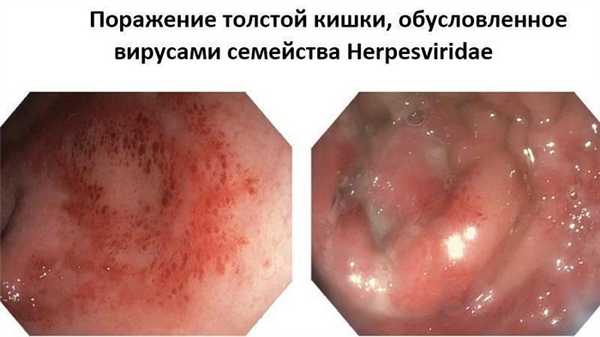 Таким образом, поражение слизистых нижних отделов желудочно-кишечного тракта может быть обусловлено вирусами простого герпеса 1 и 2 типа, цитомегаловирусом (ВГЧ 5 типа) и вирусом герпеса человека 8 типа.