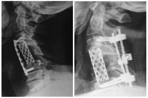 Таким образом, декомпрессия и стабилизация пластиной оказались эффективными при адекватной плотности костной ткани и фиксации более чем в четырех точках опоры винтами соответствующей длины.