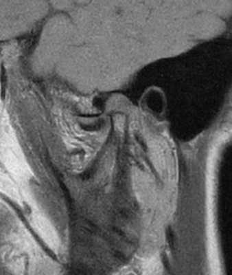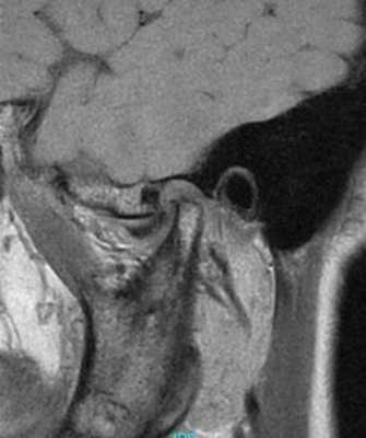 Фото 1. МРТ-скан правого ВНЧС при закрытом состоянии рта: визуализация положения диска.
