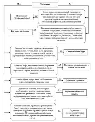 · острое начало заболевания с картины гастроэнтерита с последующим, в течение нескольких часов, присоединением неврологической симптоматики, либо второй вариант начала заболевания, при котором диспепсический синдром отсутствует и на первый план с самого начала болезни выступает поражение ЦНС.