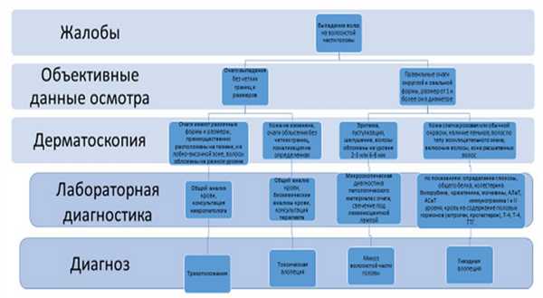 - выявления при трихоскопии (дерматоскопии волосистой части головы) «желтых точек», кадаверизированных волос, волос в виде восклицательных знаков.