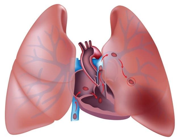Эмболия легочных сосудов - это блокада (закупорка) одной или более артерий в легких. В большинстве случаев эмболия легочных сосудов вызывается кровяными сгустками (тромбами), которые перемещаются из других частей тела, чаще всего из нижних конечностей.