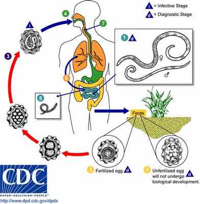 Яйца вылупляются в кишечнике, личинки мигрируют сначала в легкие, а затем в кишечник, где они созревают.