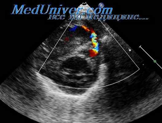 ЭхоКГ признаки ООО – небольшой дефект в центральной части МПП (обычно 4-6 мм), не редко визуализируется клапан ООО; Qp/Qs не превышает 1.5:1.0, легочная гипертензия не регистрируется. Ни по данным ЭКГ, ни по данным рентгенографии грудной клетки изменений не выявляется.