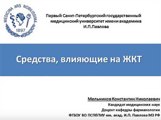 Лекция для студентов 3-го курса лечебного факультета ПСПбГМУ им. акад. И.П. Павлова Мельников К.Н. Средства, влияющие на ЖКТ (видео)