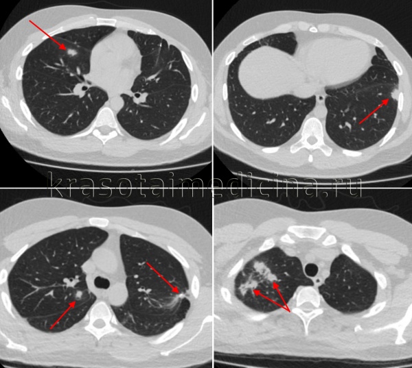 Проводится в зависимости от полученных результатов биопсии легкого, так как причин для диссеминации в легком более 100.