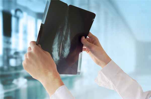 Маммография. Определение опухолевого образования округлой (овальной) формы с выраженными границами и дольчатой структурой. На рентгеновском снимке видна интенсивная и однородная тень от листовидной опухоли.