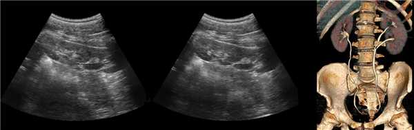 - Рентгеновская компьютерная томография с контрастным усилением или экскреторная урография с сопоставлением уро- и эхографических данных и данных повторного "нацеленного" УЗИ.