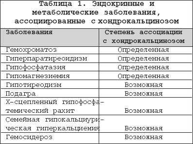 • Метаболическое заболевание, приводящее к около- или внутрисуставному хондрокальцинозу: