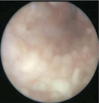 Рисунок 3. Эндоскопическая картина: множественные послизистые кисты